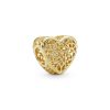 Practice peace of mind with the Openwork Heart & Two Feathers Dreamcatcher Charm. Inspired by the original Pandora dreamcatcher charm. this two-tone design is hand-finished in Pandora Rose (14k rose gold-plated unique metal blend) and sterling silver. The heart-shaped charm features intricate openwork detailing and includes two dangling feathers. and the engraving Follow your dreams. Dreamcatchers are protective talismans meant to ward off evil spirits and bad dreams. so wear this charm for endlessly happy thoughts.