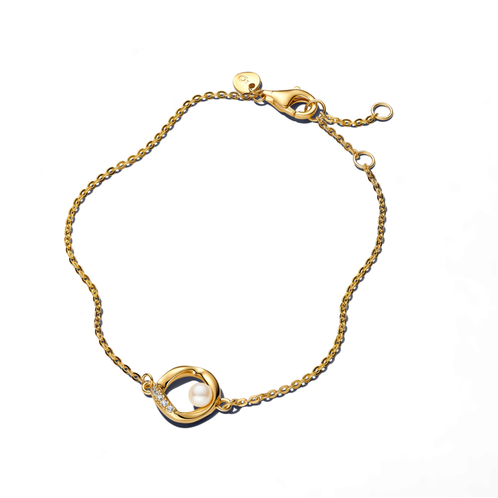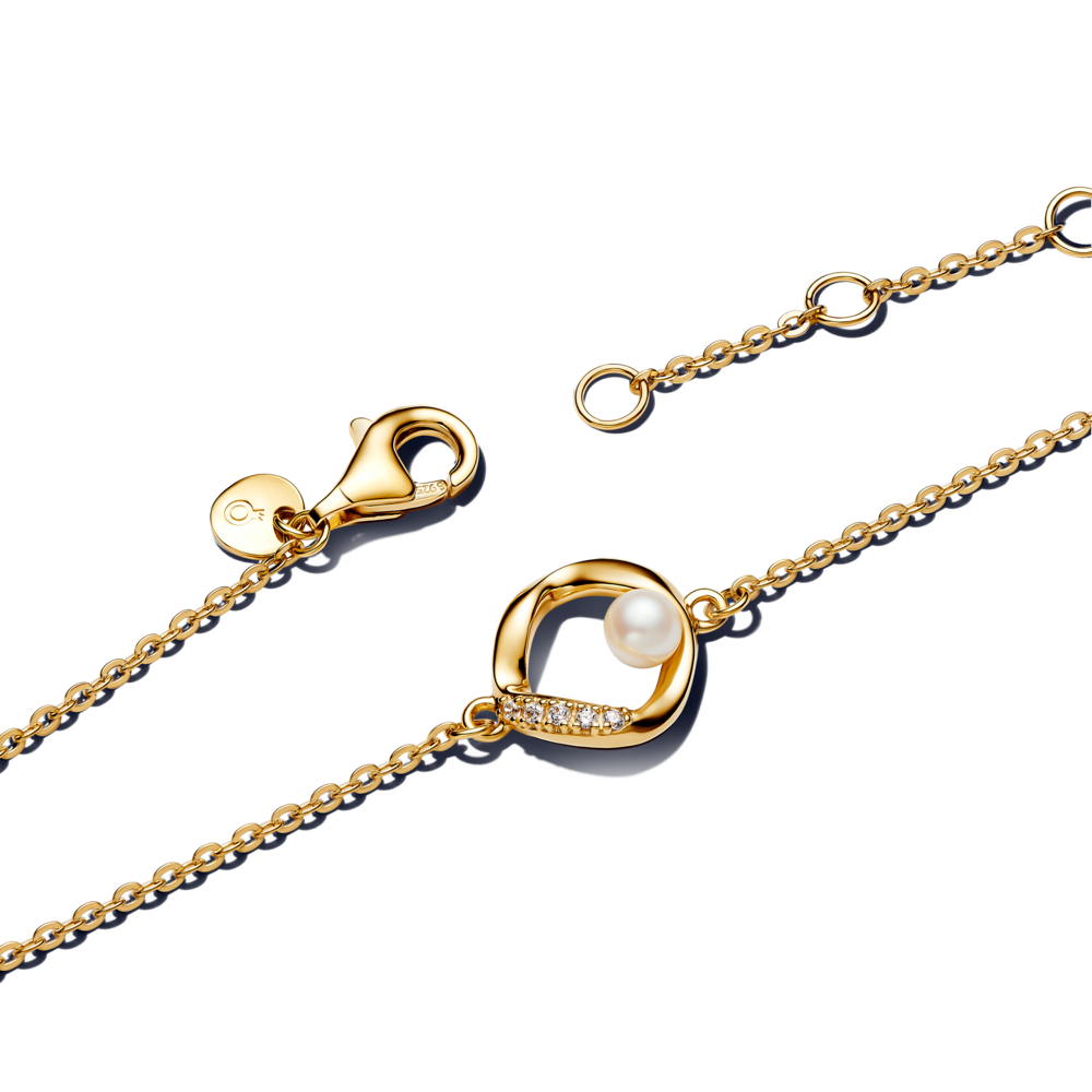 Organically Shaped Pavé Circle & Treated Freshwater Cultured Pearl Bracelet