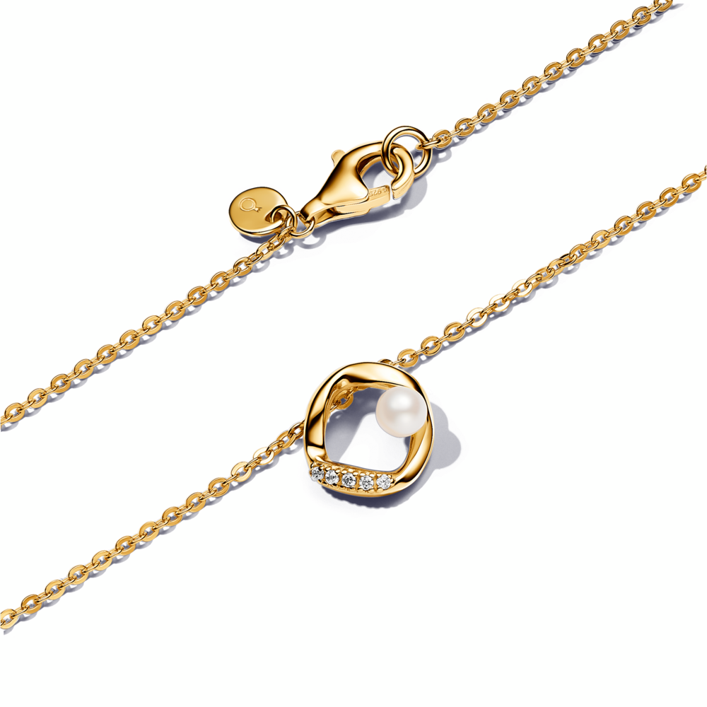 Organically Shaped Pavé Circle & Treated Freshwater Cultured Pearl Collier Necklace