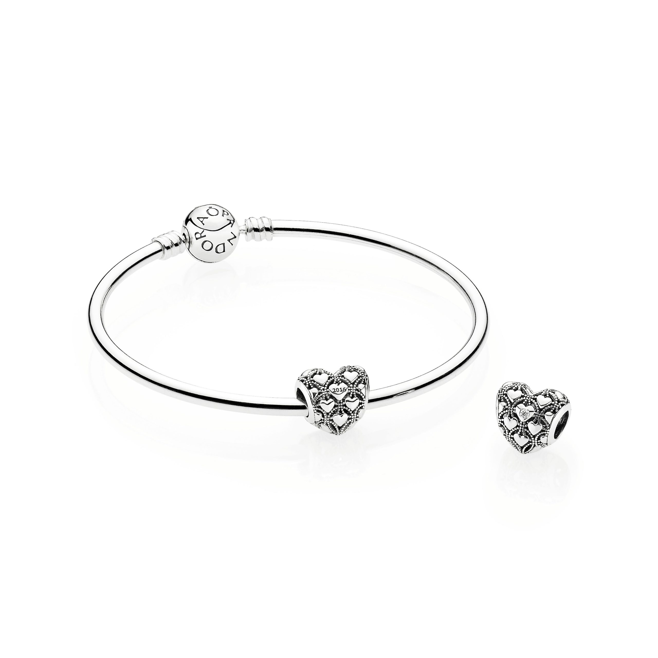 The iconic sterling silver heart charm is updated in a loving tribute to PANDORA fans. Decorated with multiple petite hearts connected with circles of beaded silver. the new Club charm is punctuated with a single shimmering diamond and the engraving ‘2016’. A beautiful collector’s item.
