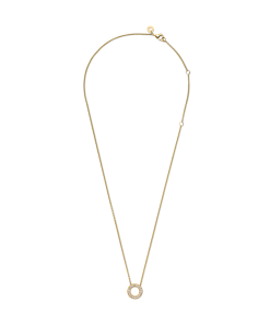 Choose sophisticated style with the Pandora Logo Pavé Circle Collier Necklace. Hand-finished in 14k gold plating. the necklace features an open circle with clear cubic zirconia pavé. The pavé is framed by micro-beading and the sides of the circle have cut-out hearts. The back side of the circle is polished with an engraved Pandora logo. Perfect for everyday style or special occasions. this necklace will elevate your look no matter how you wear it.