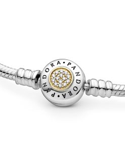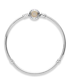 Every charm collection needs a bracelet to show it off. Transforming our classic snake chain bracelet into a new icon of personal style. this Pandora Moments piece is reimagined with a button-shaped logo clasp centred with 14k gold and twinkling cubic zirconia for a luxe finish. Add your edit of charms to make this timeless. two-tone bracelet personal. Or gift it to someone special to mark the start of a new collection of meaningful charms.