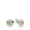 Make these Pandora logo sterling silver stud earrings with sparkling details a part of your everyday look. Giving you two looks in one style. the geometric design features a small centre ring stamped with the Pandora logo and a larger outer ring set with glittering cubic zirconia for endless sparkle. Wear them mismatched or as a pair and play with styling the stone-embellished jackets by wearing them in front or behind your lobes.