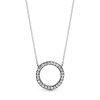 Classic jewellery pieces with a minimalist expression never date. This sterling silver necklace is shaped with a double circle pendant as a symbol of a forever connection. One is minimally detailed with our Pandora logo; the other with sparkling cubic zirconia for a glittering finish. Adjust the chain to find your perfect drop.