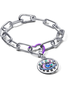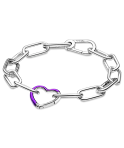 Get the look you love by adding this Pandora ME Styling Heart Connector to your rotation. Made from sterling silver. this heart connector features grooved lines and transparent enamel in vibrant purple. The interior of each link is polished sterling silver to keep the enamel scratch-free. Attach it to your Pandora ME link chain bracelets or necklaces to curate the shape and length of your pieces. then style with up to eight of your favourite mini dangles or up to three medallions. You can even add it to Pandora ME earrings. The heart-shaped styling connector’s hinge opens inwards with a springback function to make customising your jewellery as simple and secure as possible.