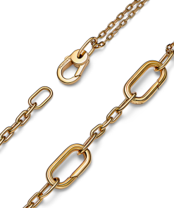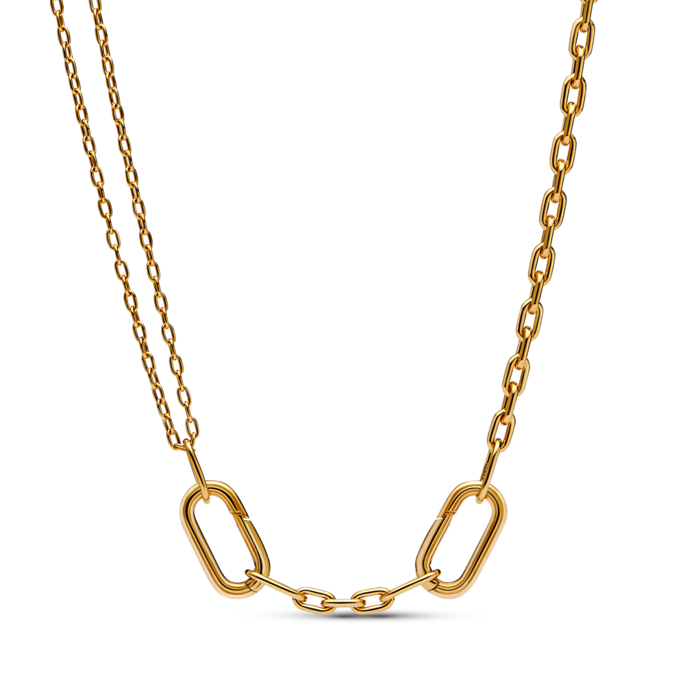 Your self-expression journey starts here: this 14k gold-plated Pandora ME Double Link Chain Necklace has endless styling possibilities to choose from. featuring two openable styling connectors – designed with grooved lines to set them apart – five links between each styling connector and a small carabiner clasp closure. Half of the necklace links up to a double chain detail. adding an individual edge to the chain. You can keep the original length. make your link chain longer or turn it into a choker. all by adding and taking away links to suit you. Once you’ve customised your link chain. remix it with meaningful medallions and mini dangles on the openable styling connectors to tell your story.