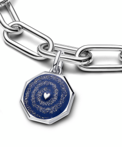 Heart octagon sterling silver medallion with glittery and blue enamel