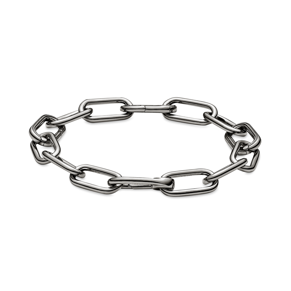 Special features: a statement link bracelet with a carabiner clasp; three openable connectors each with grooved lines on the sides following the shape of the links; the carabiner clasp and the openable connectors open inwards with springback function; links are grouped in pairs of two or more links. depending on the size of bracelet; Pandora logo engraved on two sides of the carabiner clasp. Styling note: one set of interlocking links between each connector corresponds to one double link. four small interlocking links or one styling link; replaced with same length elements to keep the size and length of the necklace 1:1; you can style medallions with openable top parts on both links and connectors; style mini dangles with closed top parts on openable connectors only; for a custom look exchange the three connectors with other connectors or the links in between with other links of the same length; each openable connector can be styled with a maximum of 8 Pandora Me mini dangles or 2 Pandora Me medallions. Inspiration: enjoying the ultimate level of personalisation and freedom of styling for an individual. customised look.