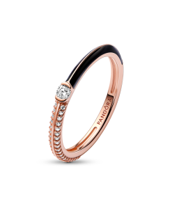 Enamel: Black Motif: band ring with enamel. pavé and stone