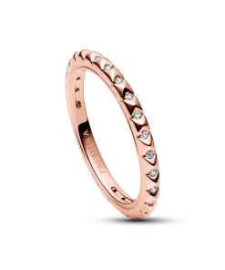 14k Rose gold-plated pyramid studded ring with clear cubic zirconia