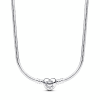 Pearls. reimagined: our 14k gold-plated Pandora ME Slim Treated Freshwater Cultured Pearl Necklace takes the iconic pearl and turns it into a design with endless personalisation potential. The necklace has two openable styling connectors. designed with grooved lines to set them apart. These links lead to a row of mystical treated freshwater cultured pearls. with a carabiner clasp closure. Customise your link chain first: one set of interlocking links can be swapped out for one double link or one styling link – you can keep the original length or adjust it to suit you. Once you’ve curated your link chain. style meaningful medallions and mini dangles on the openable styling connectors to show the world who you are.