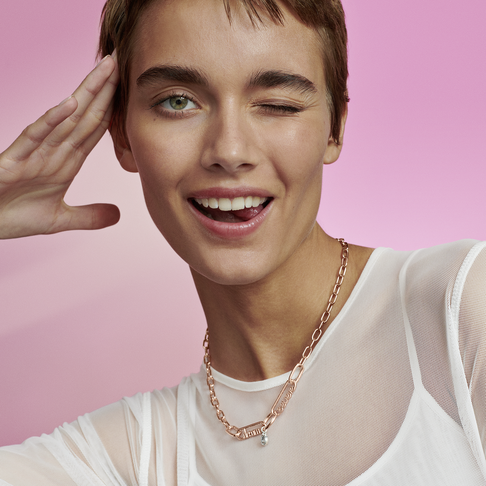 Special features: polished; gothic script font. Extra note: corresponds to the length of a double link or four small interlocking links; may be exchanged 1:1 to keep length of bracelet or necklace; can also be styled on earrings; functions between connectors for endless styling possibilities. Inspiration: never stop dreaming; gothic script font inspired by the punk music and fashion scene; adding your own meaning to your style; a positive reminder to yourself; enjoying the ultimate level of personalization and freedom of styling for an individual. customized look.
