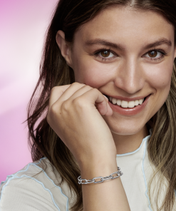 Special features: exterior features two rows of sparkling pavé around the length of the whole shape; rows are separated by a centred sterling silver divider; both links are polished sterling silver on the inside. so that only metal brushes against metal when interlocked with connectors. Extra note: the length of the two interlocking links corresponds to two regular links forming a double link. four small interlocking links or one styling link; replace 1:1 to keep length; can be styled between connectors on bracelets or necklaces or on Pandora Me hoop earrings. Inspiration: enjoying the ultimate level of personalisation and freedom of styling for an individual. customised look.
