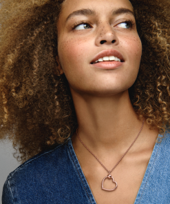 Go stylishly asymmetrical with the Pandora Moments Heart Charm Pendant. This pendant is hand-finished in 14k rose gold-plated metal and features an openable rigid snake chain heart outline. The heart hangs at an angle and includes a ball-shaped clasp with a Pandora logo. This pendant can be styled with up to three charms. dangles or pendants (except select long charm styles) and should be worn on a thick cable chain necklace for comfort and security.
