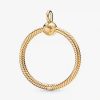 Switch up your style with the Pandora Moments Heart O Pendant. Hand-finished in sterling silver. this design features our popular snake chain texture. The heart-shaped pendant hangs at an angle on the bail and includes a ball-shaped clasp featuring the Pandora logo. Press the heart-shaped button on the clasp to open. Style this piece with up to three charms. dangles or pendants on a thick cable chain necklace and go for designs in contrasting metal tones for a varied look. Please note. select wide charm styles cannot be worn on this Heart O Pendant.