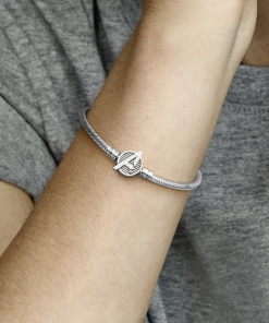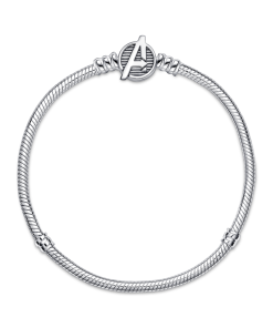 Assemble your heroes on our Pandora Moments Marvel The Avengers Logo Clasp Snake Chain Bracelet. Hand-finished in sterling silver. this charm holder features a clasp engraved with the iconic Avengers logo and etched line details. It’s the perfect way to showcase your favourite characters and tell the world about your love for the Marvel Cinematic Universe. Style it with up to 18 charms. This Marvel must-have arrives with exclusive packaging making this an extra-special addition to your collection.