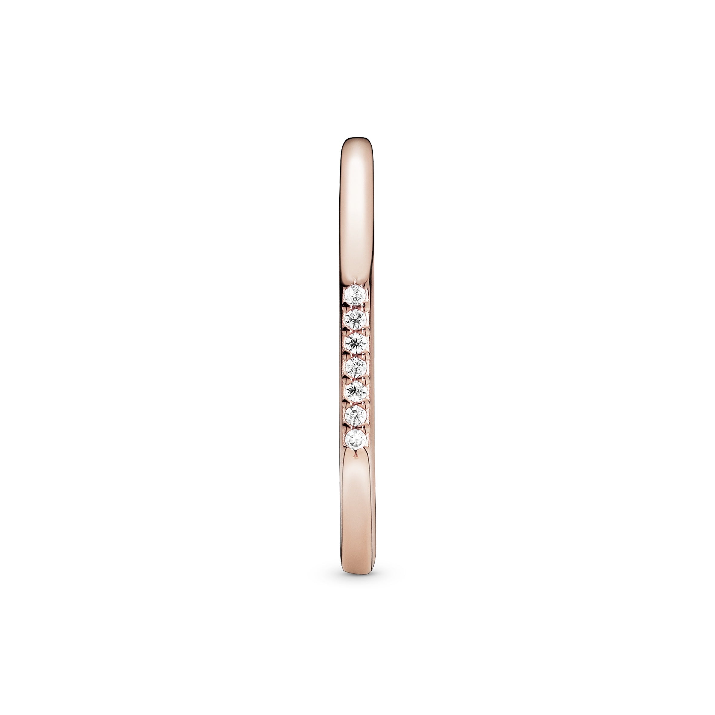 Add a bit of industrial edge to your look with this Multifaceted Ring in Pandora Rose (14k rose gold-plated unique metal blend). Inspired by geometric shapes and modern minimalistic style. this ring stands out with five faceted angles on one half and a semi-circle on the other. Thin and elegant. it’s finished in polished metal and features a row of clear cubic zirconia on one facet. The stackable design makes it perfect for wearing alone or layering with other rings in mixed metals.