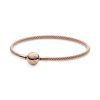 Add edge to your look with the versatile leather bracelet with details in Pandora Rose. our 14k rose gold-plated unique metal blend. Crafted in black leather and tipped with the warm-toned metal. the slider bracelet can be adjusted for the perfect fit. The Pandora Moments piece holds up to six charms and it looks equally good on its own.