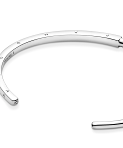 Streamline your look with the Pandora Signature I-D Bangle. With a half-squared. half-rounded profile. this bangle is hand-finished in Sterling Silver. The round polished profile transitions to a larger squared profile in the middle. which features the Pandora logo on its three outer sides. Each end of the bangle includes the Pandora Crown O monogram. The bangle is precisely sized for optimal performance and fit and is not designed to be flexed and twisted when put on and removed.