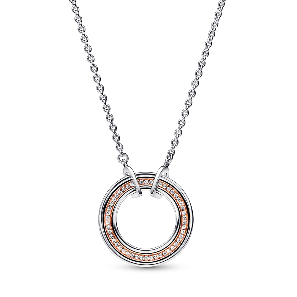 Pandora logo sterling silver and 14k rose gold-plated necklace with clear cubic zirconia