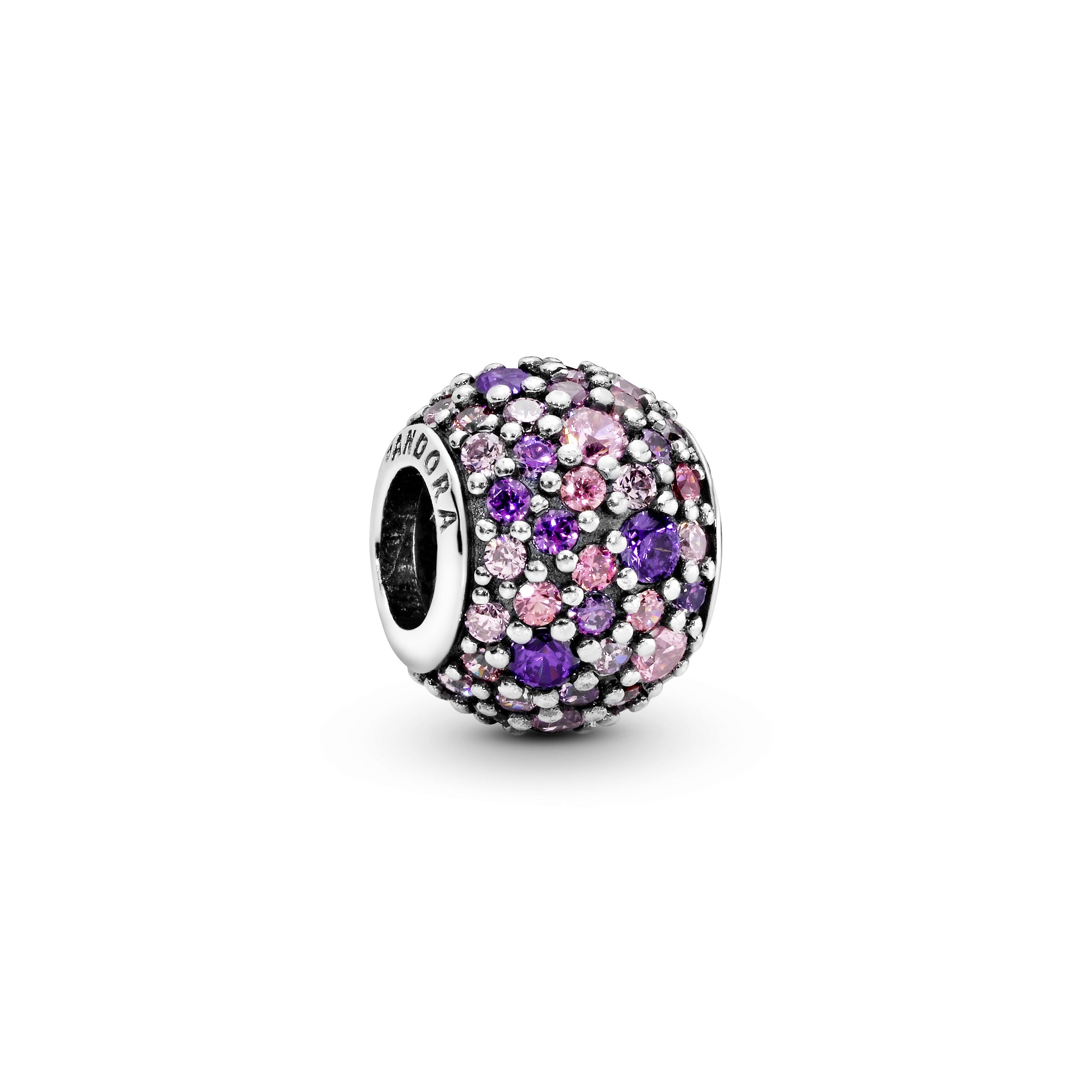 Our pavé ball charm lends luxe edge to your Pandora Moments bracelet thanks to its combination of carefully set stones and precious metal. Made from sterling silver. the round style is set with a multitude of glittering cubic zirconia and crystals in clear. blue and green hues. Wear it as part of your story together with other charms that represent the things you love.