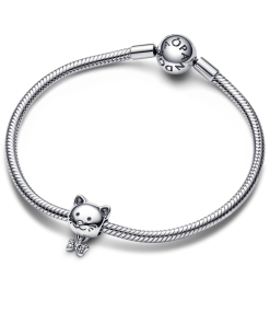 Let your love for your feline bestie shine with the Pet Cat & Bow Charm. Crafted from sterling silver. this retro piece with a modern touch is decorated with engraved lines on the face and sparkling pavé on the bow dangle. Wear it on a bracelet or charm holder to show your furry companion’s special place in your heart.