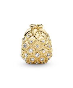 Tropical charms channel a relaxed vibe on Pandora Moments bracelets. Made to represent somewhere. something or someone you love. this fruity little number is shaped as a pineapple. crafted in 14k Gold Plated . The unique metal blend with 18k gold plating lends a radiant high-shine finish to the piece. Wear it with other charms that resonate.