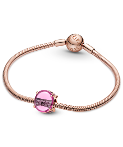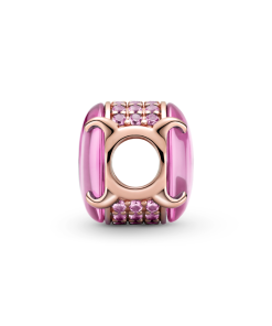 Show your love of colour with the Pink Oval Cabochon Charm. Hand-finished in Pandora Rose (14k rose gold-plated unique metal blend). this piece features two oval cabochon-cut stones to create a see-through button-shaped charm. The edges are lined with pink stones for added sparkle. Style this piece on its own on your go-to Pandora Moments bracelet for an eye-catching effect. Alternatively. wear with other colourful designs for a striking look.