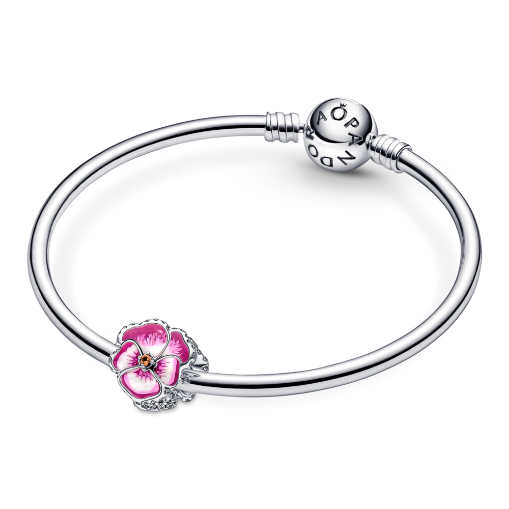 Colour your spring with our Pink Pansy Flower Charm. Set in sterling silver and accented with sparkling clear cubic zirconia. each pansy is finished with hand-painted enamel. making every flower completely unique. The newest flower to grace our garden. pansies symbolise love in its many forms. Wear yours as a reminder of all the loved ones in your life and style it with other pieces from our pansy collection for a coordinated look.