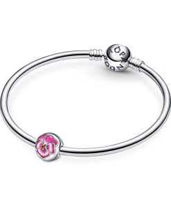 Colour your spring with our Pink Pansy Flower Clip Charm. Hand-finished in sterling silver and accented by a man-made orange crystal in the centre of the flower. each petal on the pansy is hand-painted. making every charm completely unique. The newest flower to grace our garden. pansies symbolise love in its many forms. Wear yours as a reminder of all the loved ones in your life. Please note: this charm does not have an interior silicone grip and will slide freely along bracelets if not styled on threaders or between stoppers.