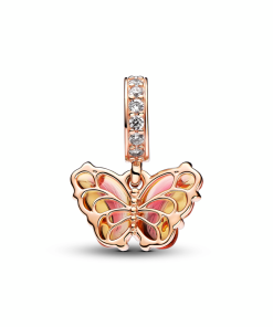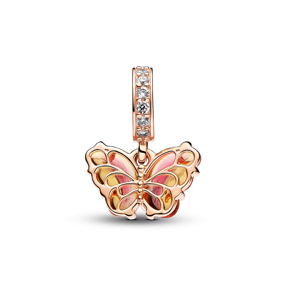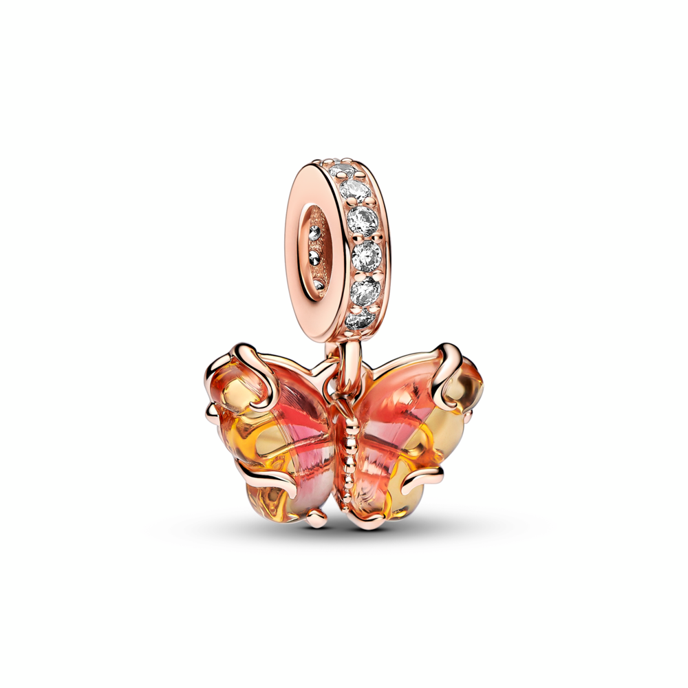 Butterfly 14k rose gold-plated dangle with bi-colour orange and pink Murano glass and clear cubic zirconia