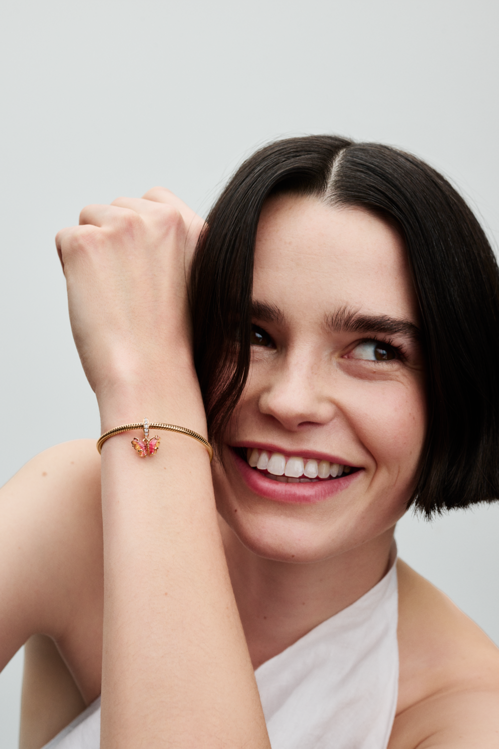 Pink & Yellow Murano Glass Butterfly Dangle Charm