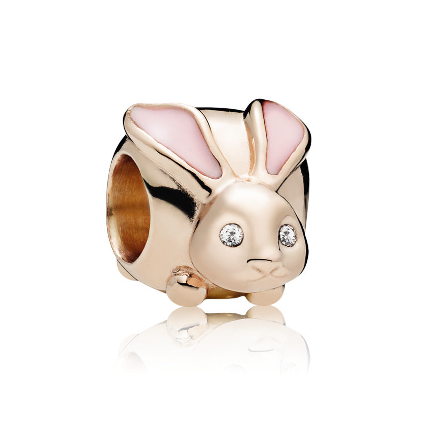 Whether its your spirit animal or favourite pet. show your love of rabbits with our radiant animal charm in Pandora Rose. our 14k rose gold-plated unique metal blend. The cute bunny’s ears are touched with transparent pink enamel for definition and its eyes are set with twinkling cubic zirconia. Thread it on a Pandora Moments bracelet.
