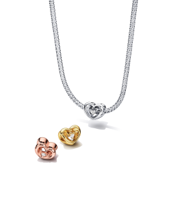 Special features: domed heart with cut-out centre with a floating heart-shaped stone dangling from two jump rings; the outline heart on front and back is concave creating a 3D effect; the sides are slightly concaved giving a more pointed look.