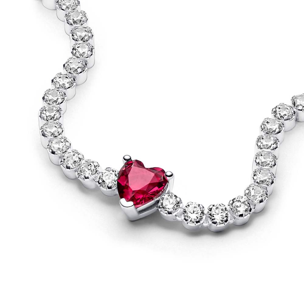 Heart sterling silver tennis bracelet with cherries jubilee red crystal and clear cubic zirconia