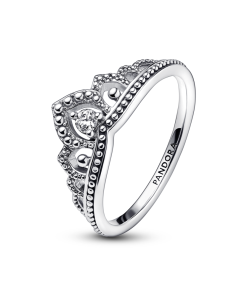 Here to give crown jewels a whole new meaning. our Regal Beaded Tiara Ring is crafted from sterling silver and features an ornate. arched design decorated with a brilliant-cut cubic zirconia stone. Textured microbeading follows the contours of this sparkling piece. giving it a fairytale feel. Crown your hand with this majestic ring and give your everyday looks the royal treatment.