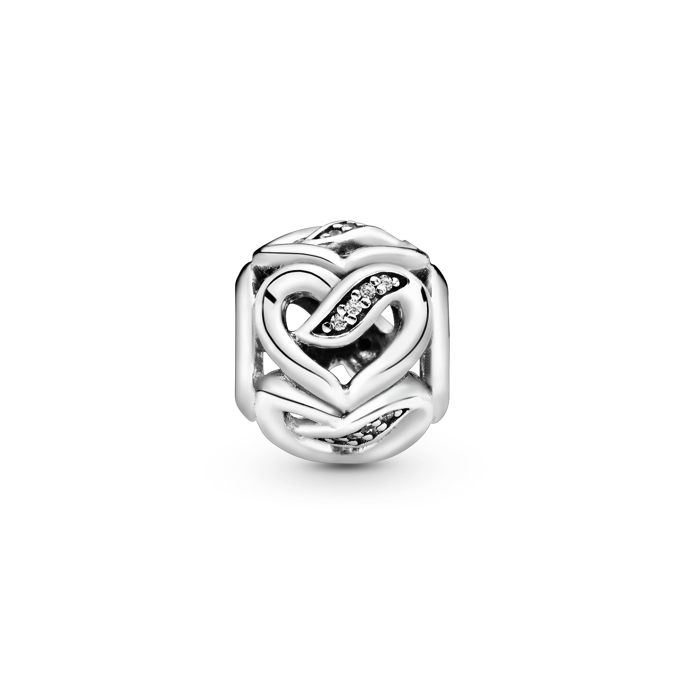 Pandora makes jewellery that lets you show the things you love and who you are. This sterling silver ball charm is shaped with a winding. unbroken line of openwork ribbon hearts as a symbol of connection. Cubic zirconia stones create a sparkling finish. It’s made for Pandora Moments bracelets. Give it meaning on your chosen carrier.