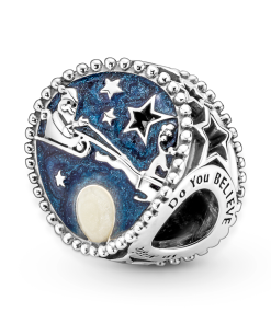 Carry the spirit of Christmas with the charming Santa & the Reindeer Charm. Hand-finished in sterling silver. the charm captures the magical moment Santa Claus flies across the Christmas night sky in his sleigh. delivering presents to children across the world. A full moon in shimmering white enamel and raised cut-out stars light up the sky. The beautiful Christmas charm is engraved with Do you BELIEVE in Magic as a reminder of the child-like magic of Christmas.
