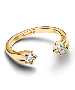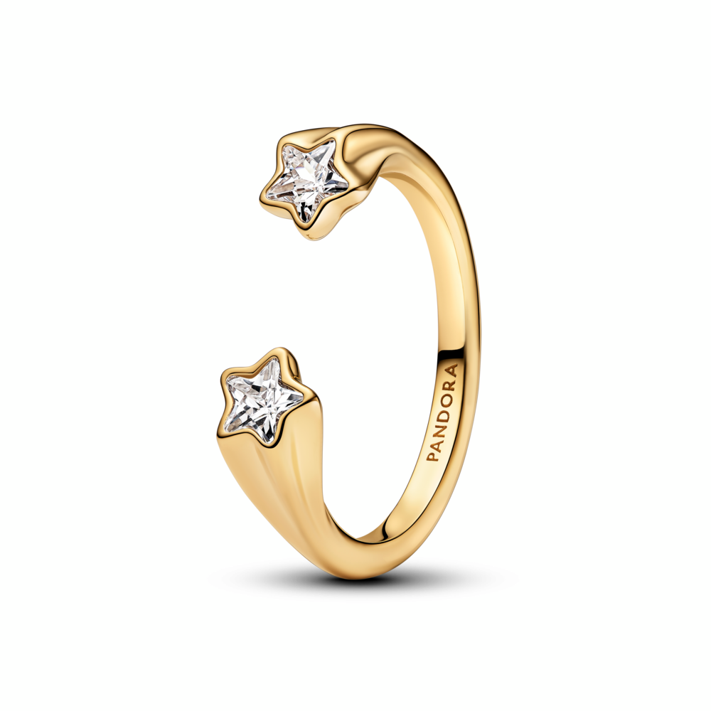 Shooting star 14k gold-plated open ring with clear cubic zirconia