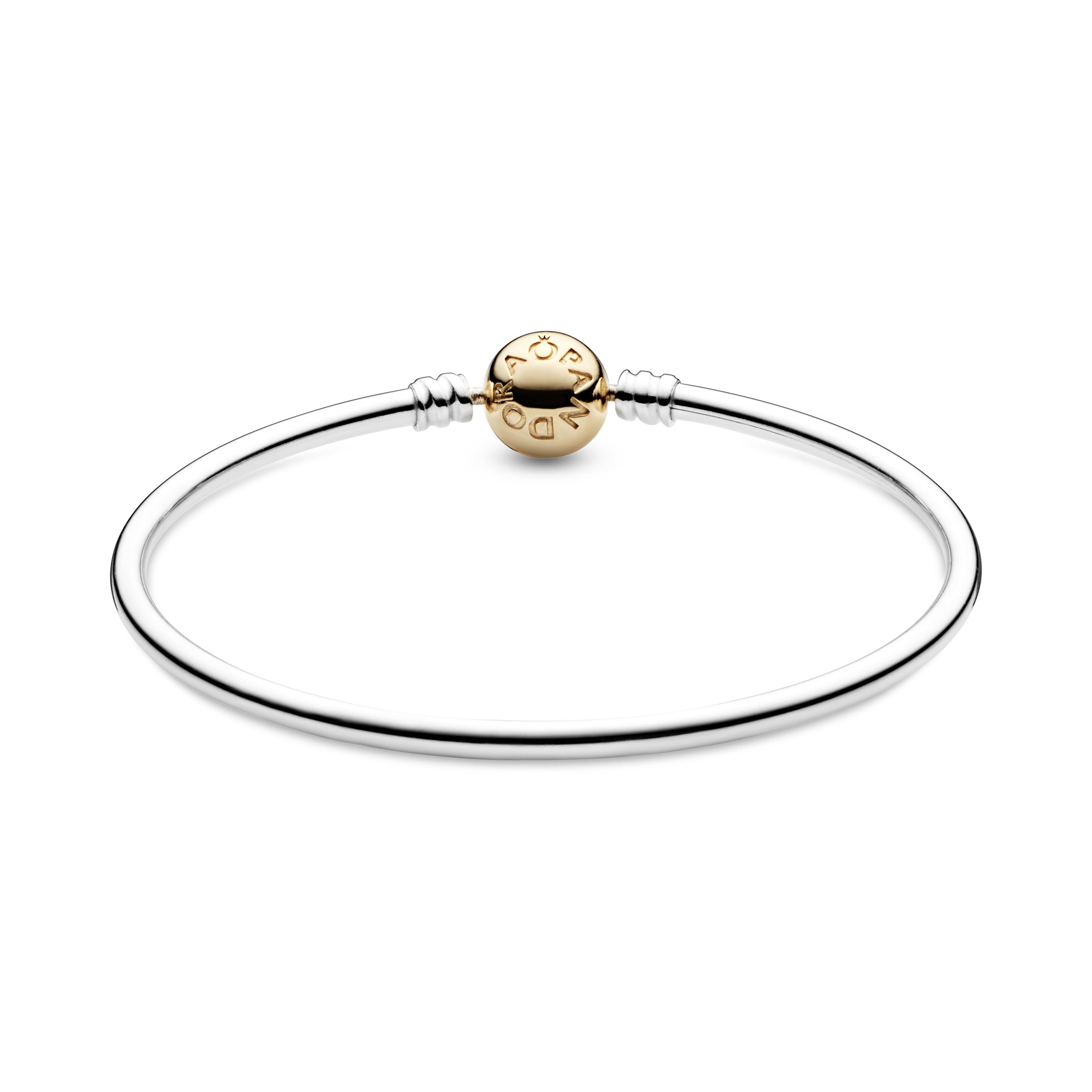 A piece to stack. layer and wear daily. our two-tone bangle is the perfect starting point for a new charm collection or a sleek addition to an existing bracelet stack. Cast from sterling silver. it’s punctuated with a 14k gold ball clasp. minimally detailed with our logo. Wear the versatile bracelet with or without charms.