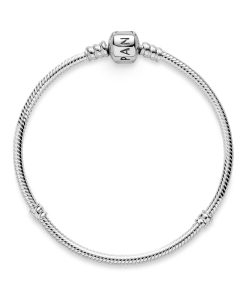 Our bestselling charm bracelet is the perfect foundation for your Pandora collection. Crafted in sleek sterling silver. this snake chain bracelet features Pandora’s iconic barrel clasp for a secure fit while the innovative threading system makes it easy to screw charms onto your bracelet. Simply add a couple of clips to divide the bracelet into three sections. then choose your favourite Pandora charms to express your unique style.