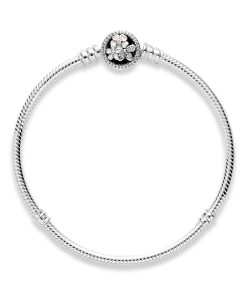 Play with your self-expression and create a collection of charms that mark the memories and milestones unique to you. Our Pandora Moments snake chain charm bracelet is the perfect starting point. The sterling silver style is detailed with a button-shaped clasp that’s accented with some of our favourite flowers: daisies and cherry blossom shine in cubic zirconia and pastel enamel. applied by hand. Let your nature bloom on this pretty piece.
