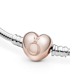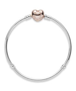Set your heart a-flutter with this romantic version of Pandora’s bestselling charm bracelet. Hand-finished with a heart-shaped clasp in Pandora Rose. this sterling silver snake chain bracelet looks stunning on its own but even better adorned with your favourite Pandora Moments charms and clips. Layer it with contrasting Pandora chain bracelets for a chic. multi-layered look.