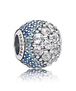 Sculpted into a ball shape and expertly pavé-set by hand with tonal blue crystals and clear cubic zirconia in contrasting sizes. our sterling silver charm makes a showstopping statement on Pandora Moments bracelets. The glittering adornments sweep around the style to create a sea of shimmering stones.