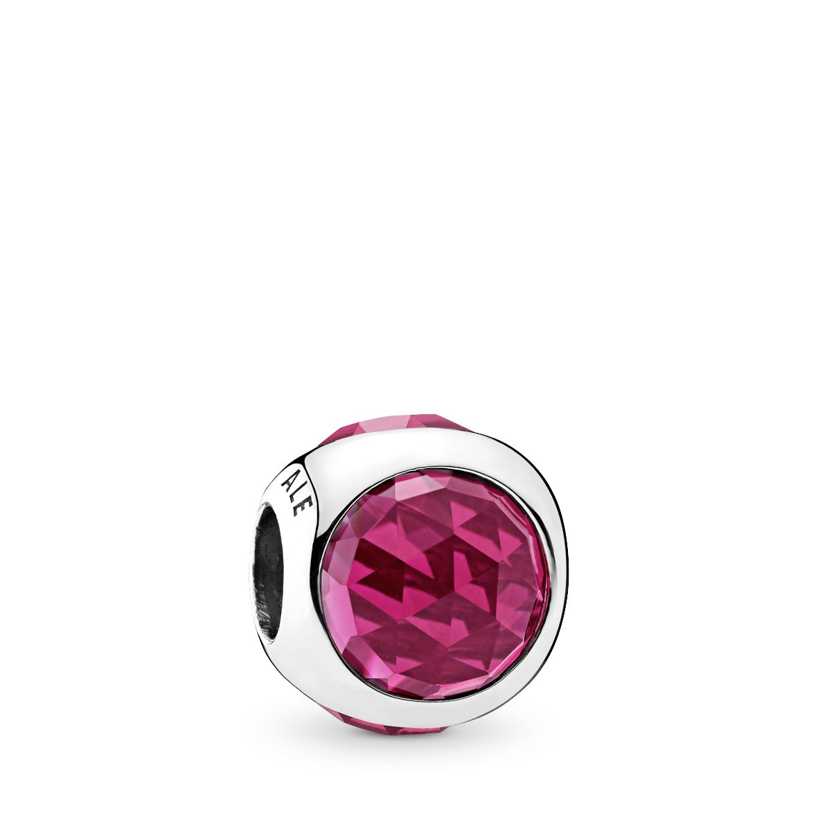 Set with three faceted crystals in a stunning cerise pink hue. this hand-finished sterling silver charm is inspired by water droplets. It will bring radiant colour to any bracelet.