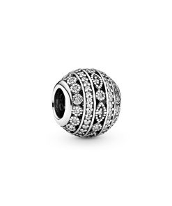 Take a lesson in geometry with this pavé charm. Intricately crafted with alternating rows of timeless. geometric shapes. the sterling silver ball charm is accented with over one hundred cubic zirconia. A stunning addition to a Pandora Moments bracelet. you can also try threading it on a necklace chain as a cool alternative to a pendant.