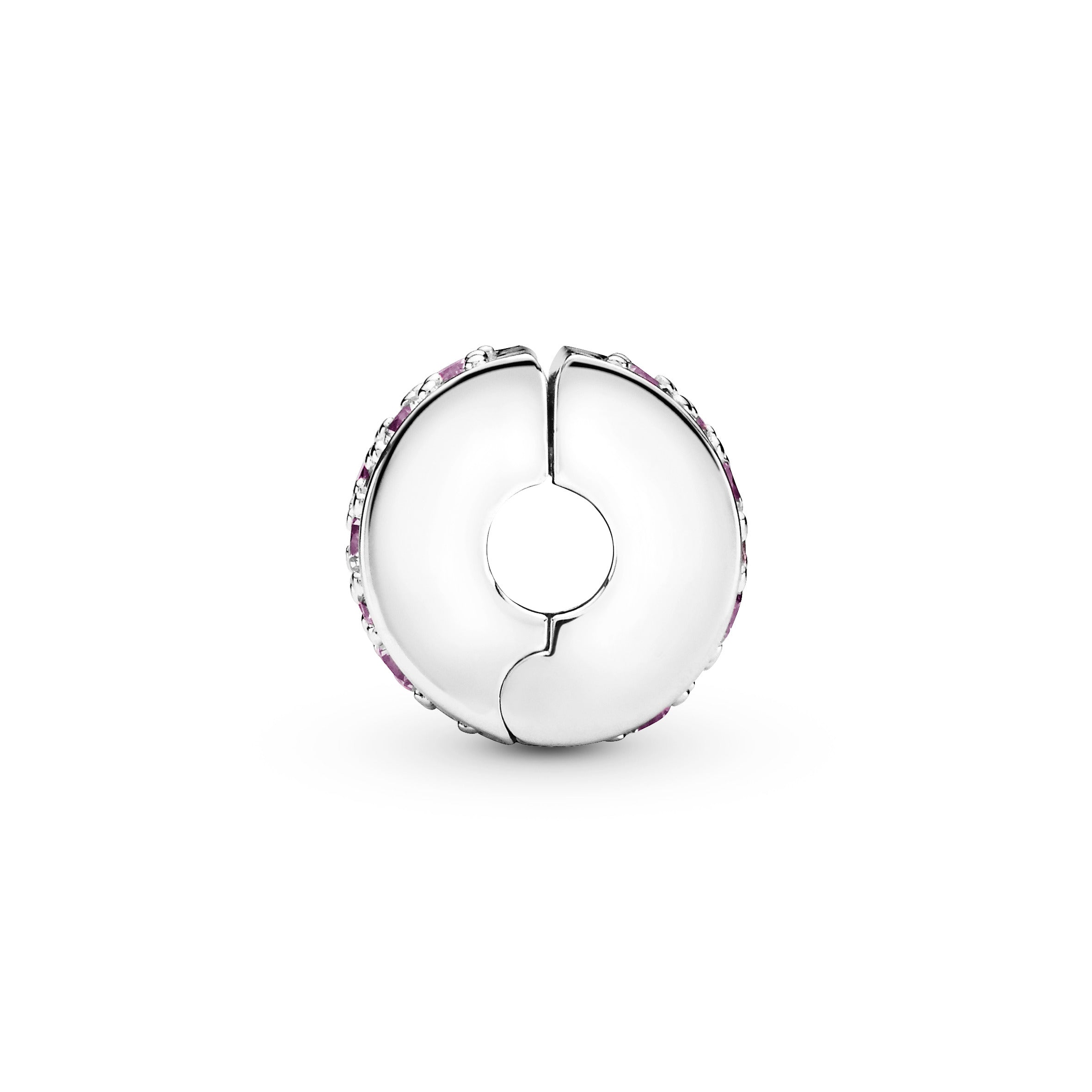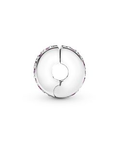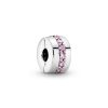 Add a touch of pink to your look with this hand-finished clip charm. pavé-set by hand with cubic zirconia. Made to be worn on any of the Pandora Moments bracelet styles the sterling silver charm brings balance to your look – clip it in place to create a symmetrical styling. The hidden silicone grip keeps it in place.