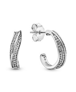 Make waves with these small hoop earrings. Undulating lines of sterling silver and stones create a deceptively simple silhouette on this elegant design. The wear-with-anything pair is a sophisticated style for everyday. as well as a timeless adornment for after-dark events.