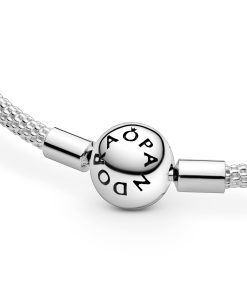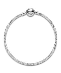 Add glamorous texture to your Pandora collection with this exquisite mesh bracelet. woven in sterling silver with an embossed ball clasp. Modern yet timeless. this Pandora charm bracelet can be worn on its own or personalised with your unique edit of Pandora charms. Stack it with other mesh bracelets in contrasting metals for a chic. contemporary look.