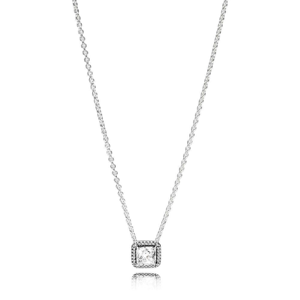 Elegance never goes out of style and this timeless collier necklace in sterling silver will serve you as a staple in your collection for years to come. The necklace set with a square clear cubic zirconia for a full-on sparkle effect The chain necklace is adjustable to three different lengths. so that you can create the perfect styling to match your look. Wear it alone for evening events or to add statement sparkle to daytime looks.